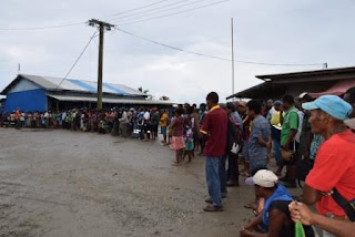 At a recent campaign trail of the Bi-Election for Samarai Murua seat. Here a political party is introducing its candidates to the public on Misima Island, Bwagaoia , Milne Bay Province. This came about as the sitting member , Gordon Wesley’s election was challenged soon after the election in 2012. The seat was made null and void in 2016 and a bi election was ordered by the court that same year.